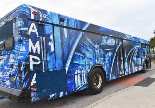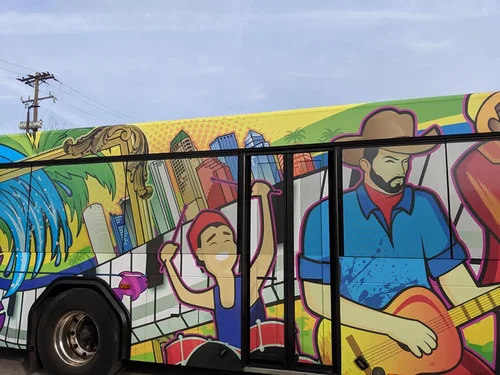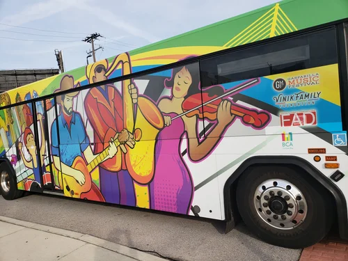 when you can’t make it to the art show, let the art show come to you. this initiative utilized existing public infrastructure to turn a standard transit bus into a thirty-five foot rolling art canvas